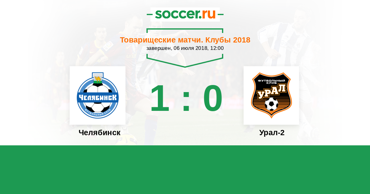 Россия. Вторая лига. Группа 4 20.07.2018 Челябинск Логотип футбольный клуб Челябинск 0:0 Логотип футбольный клуб Урал-2 (Екатеринбург) Урал-2