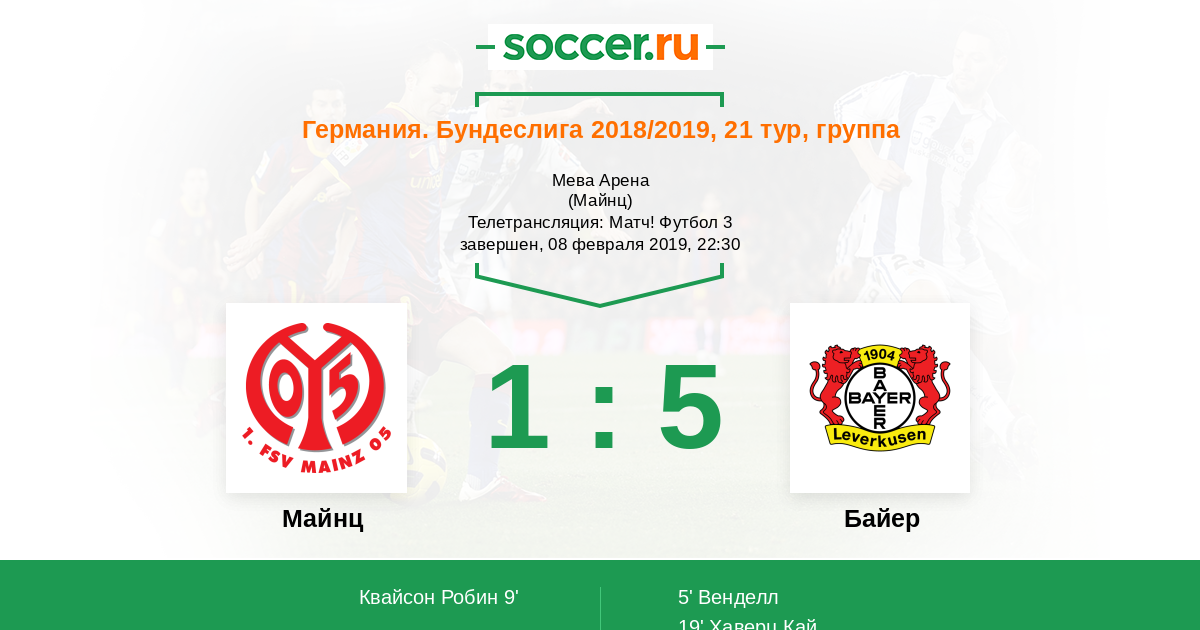 Германия. Бундеслига 18.02.2022 Майнц Логотип футбольный клуб Майнц 3:2 Логотип футбольный клуб Байер (Леверкузен) Байер
