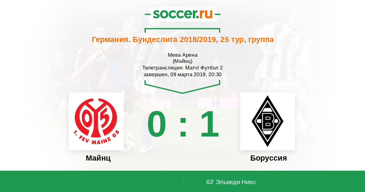 Германия. Бундеслига 21.10.2018 Боруссия Логотип футбольный клуб Боруссия (Менхенгладбах) 4:0 Логотип футбольный клуб Майнц Майнц