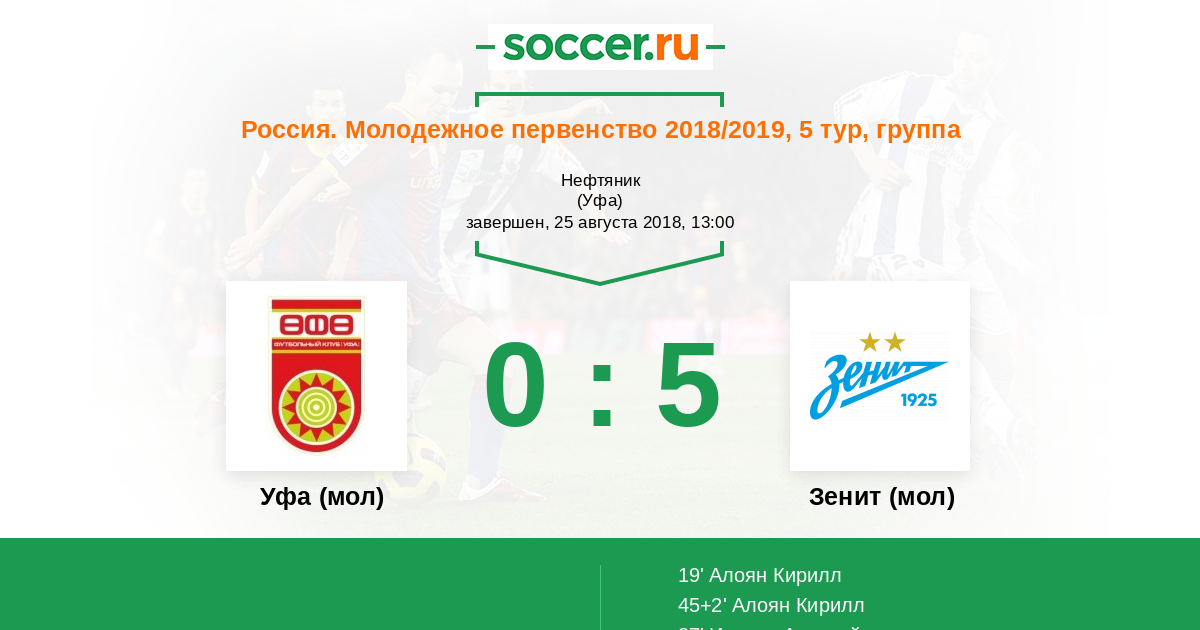 Уфа (мол) Зенит (мол)