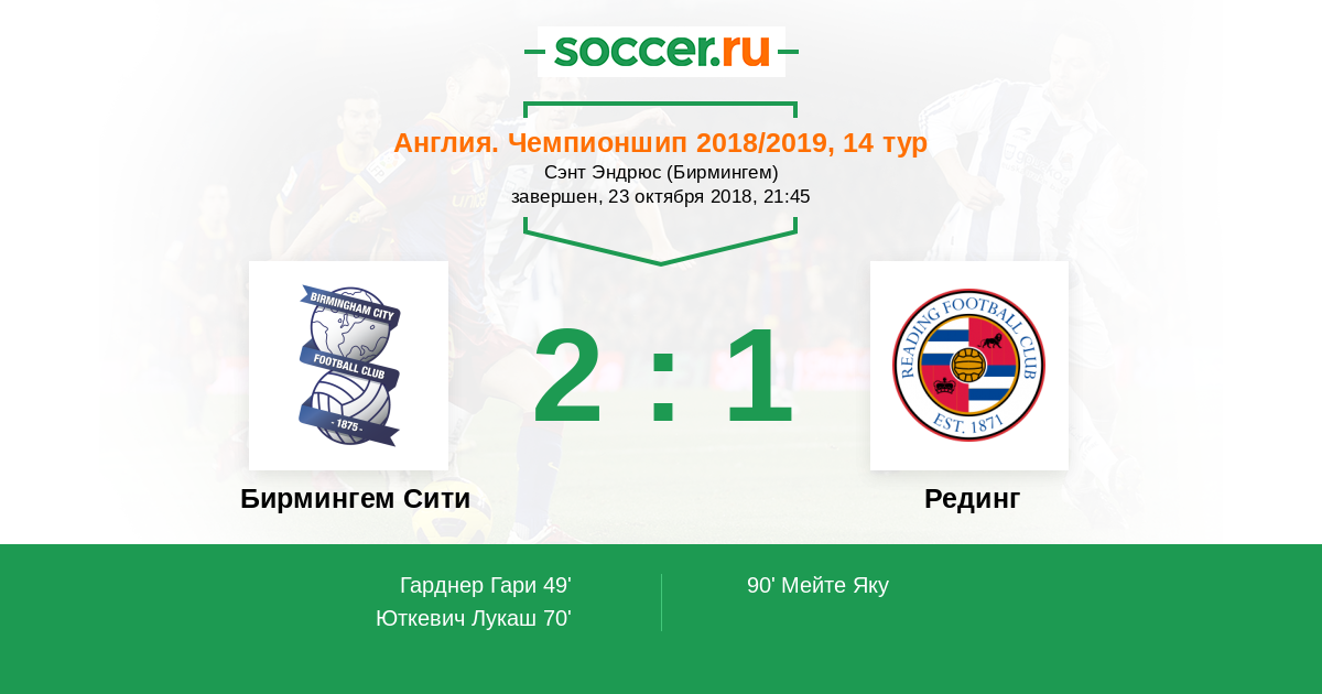 Англия. Чемпионшип 06.11.2011 Рединг Логотип футбольный клуб Рединг 1:0 Логотип футбольный клуб Бирмингем Сити Бирмингем Сити