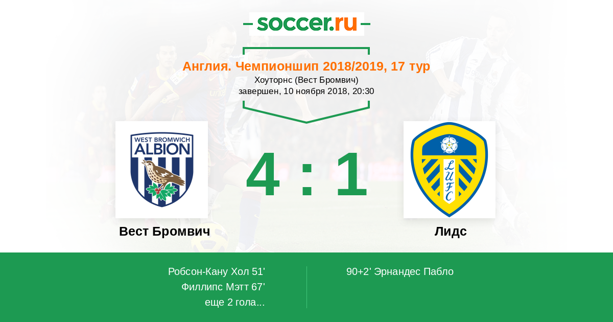 Англия. Чемпионшип 01.03.2019 Лидс Логотип футбольный клуб Лидс 4:0 Логотип футбольный клуб Вест Бромвич Вест Бромвич