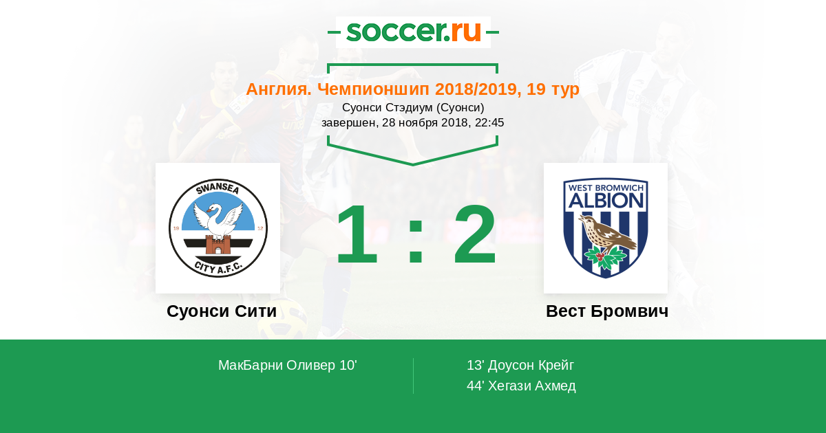 Англия. Чемпионшип 13.03.2019 Вест Бромвич Логотип футбольный клуб Вест Бромвич 3:0 Логотип футбольный клуб Суонси Сити Суонси Сити