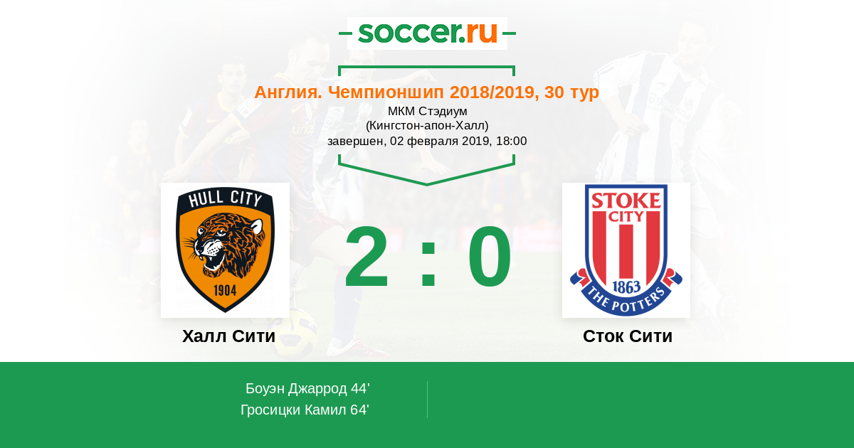 Англия. Чемпионшип 11.02.2023 Сток Сити Логотип футбольный клуб Сток Сити (Сток-он-Трент) 0:0 Логотип футбольный клуб Халл Сити (Кингстон-апон-Халл) Халл Сити