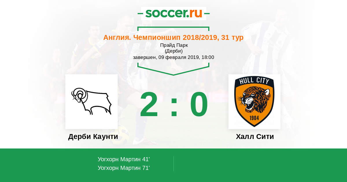 Англия. Чемпионшип 12.02.2013 Халл Сити Логотип футбольный клуб Халл Сити (Кингстон-апон-Халл) 2:1 Логотип футбольный клуб Дерби Каунти Дерби Каунти