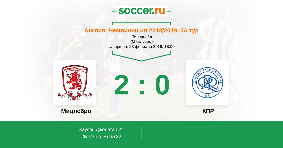 Англия. Чемпионшип 15.12.2018 КПР Логотип футбольный клуб КПР (Лондон) 2:1 Логотип футбольный клуб Мидлсбро Мидлсбро