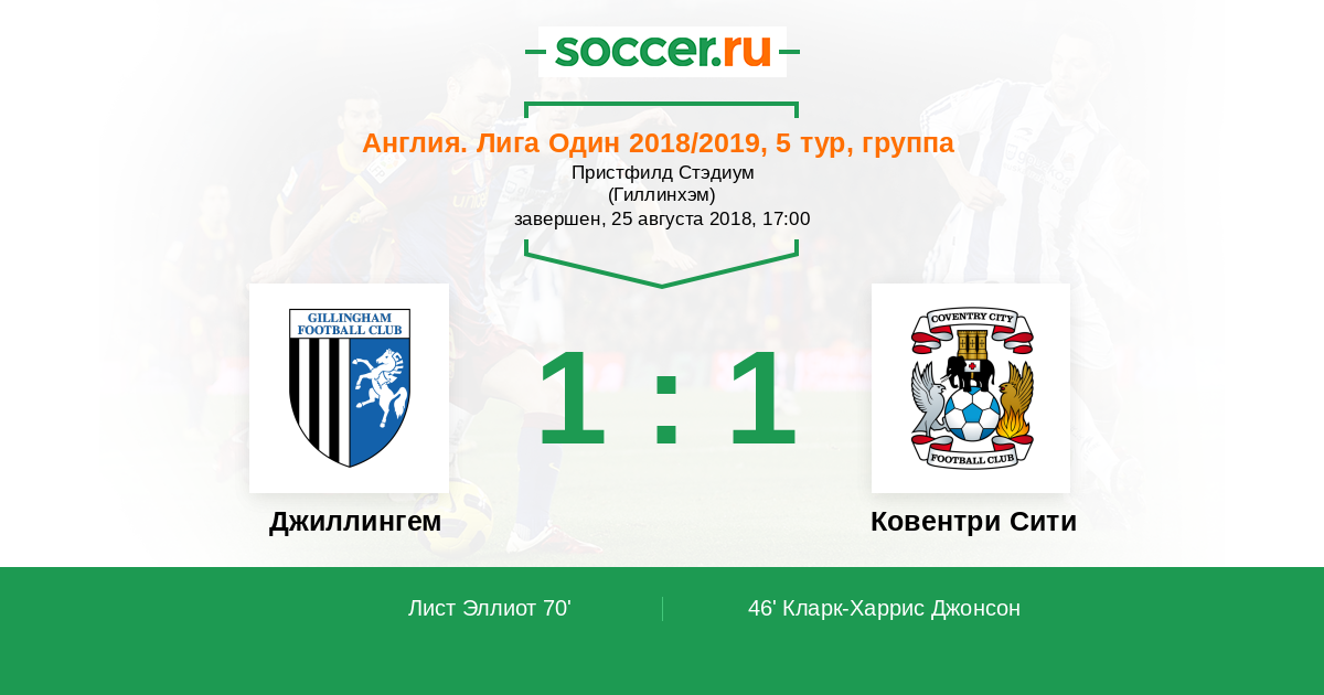 Англия. Первая Футбольная Лига 24.08.2019 Ковентри Сити Логотип футбольный клуб Ковентри Сити 1:0 Логотип футбольный клуб Джиллингем Джиллингем