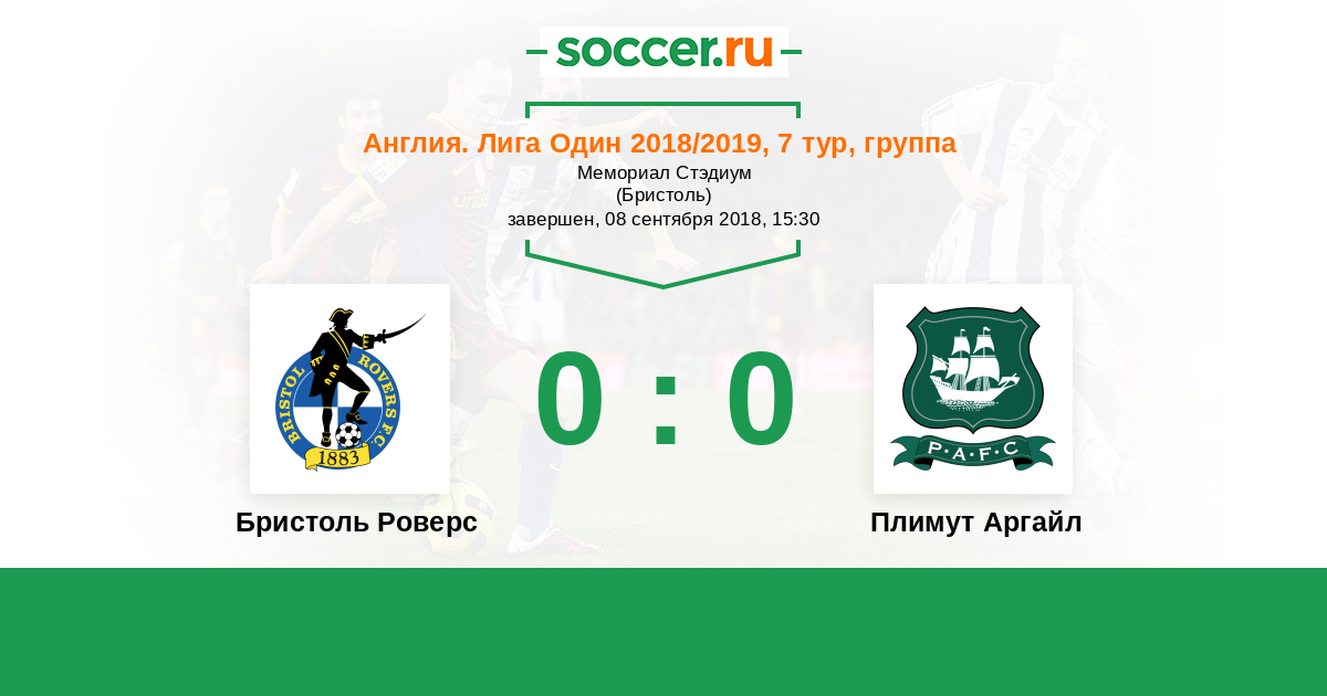 Англия. Вторая Футбольная Лига 19.09.2015 Плимут Аргайл Логотип футбольный клуб Плимут Аргайл 1:1 Логотип футбольный клуб Бристоль Роверс Бристоль Роверс
