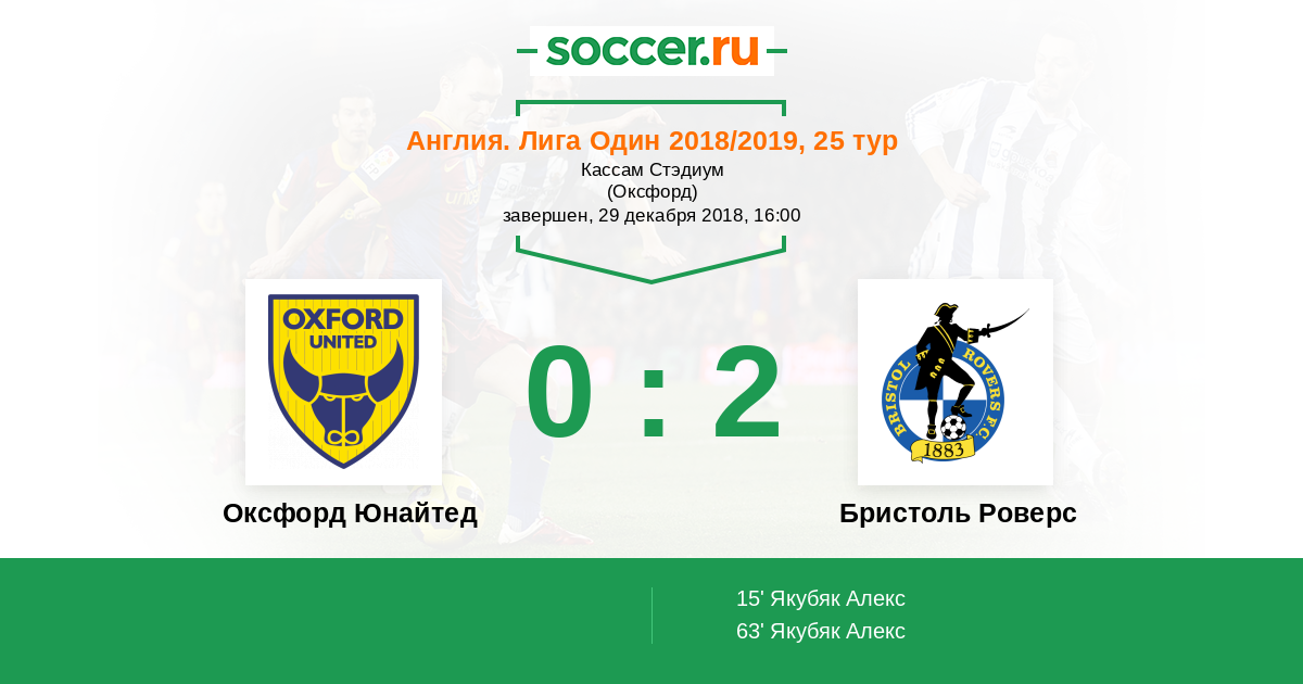 Англия. Первая Футбольная Лига 10.02.2018 Оксфорд Юнайтед Логотип футбольный клуб Оксфорд Юнайтед 1:2 Логотип футбольный клуб Бристоль Роверс Бристоль Роверс
