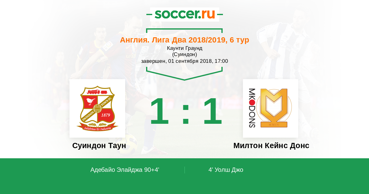 Англия. Первая Футбольная Лига 08.04.2017 Суиндон Таун Логотип футбольный клуб Суиндон Таун 1:1 Логотип футбольный клуб Милтон Кейнс Донс Милтон Кейнс Донс