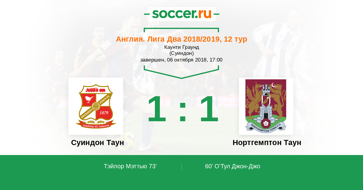 Англия. Вторая Футбольная Лига 18.09.2021 Нортгемптон Таун Логотип футбольный клуб Нортгемптон Таун 1:1 Логотип футбольный клуб Суиндон Таун Суиндон Таун