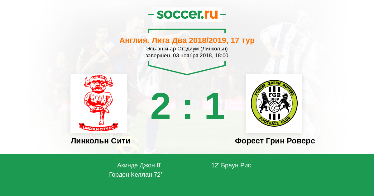 Англия. Вторая Футбольная Лига 30.12.2017 Линкольн Сити Логотип футбольный клуб Линкольн Сити 2:1 Логотип футбольный клуб Форест Грин Роверс (Нейлсворт) Форест Грин Роверс