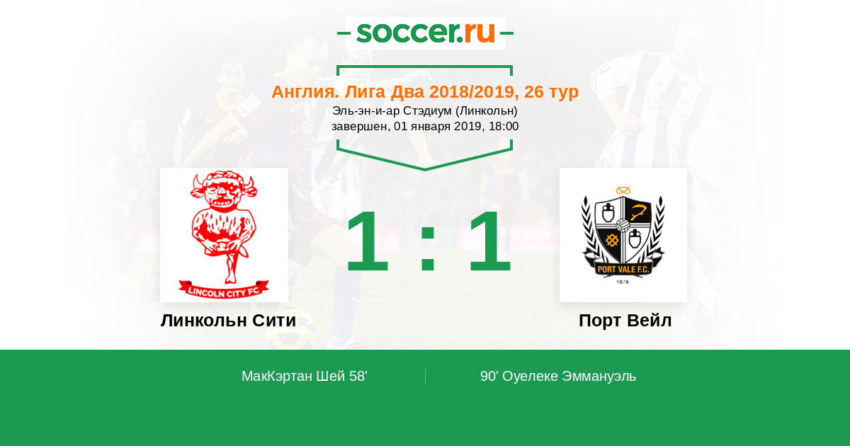 Англия. Вторая Футбольная Лига 25.11.2017 Линкольн Сити Логотип футбольный клуб Линкольн Сити 3:1 Логотип футбольный клуб Порт Вейл (Сток-он-Трент) Порт Вейл