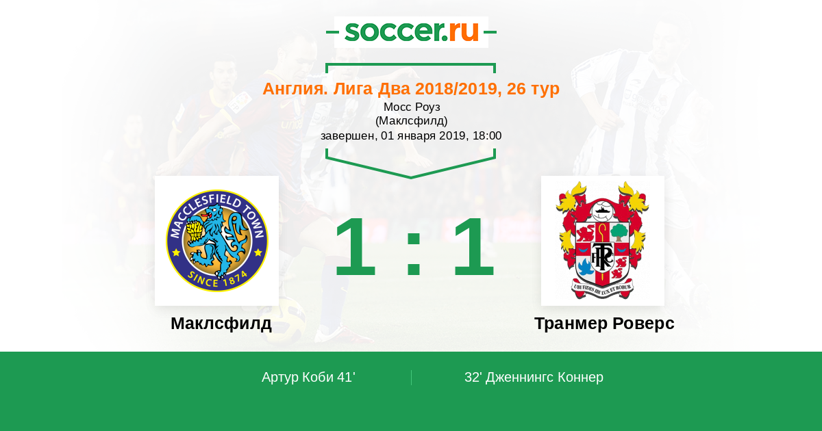 Англия. Вторая Футбольная Лига 12.10.2018 Транмер Роверс Логотип футбольный клуб Транмер Роверс 1:0 Логотип футбольный клуб Маклсфилд Маклсфилд