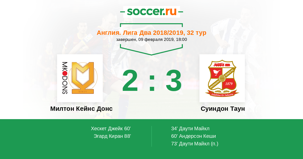 Англия. Первая Футбольная Лига 08.03.2014 Суиндон Таун Логотип футбольный клуб Суиндон Таун 1:2 Логотип футбольный клуб Милтон Кейнс Донс Милтон Кейнс Донс