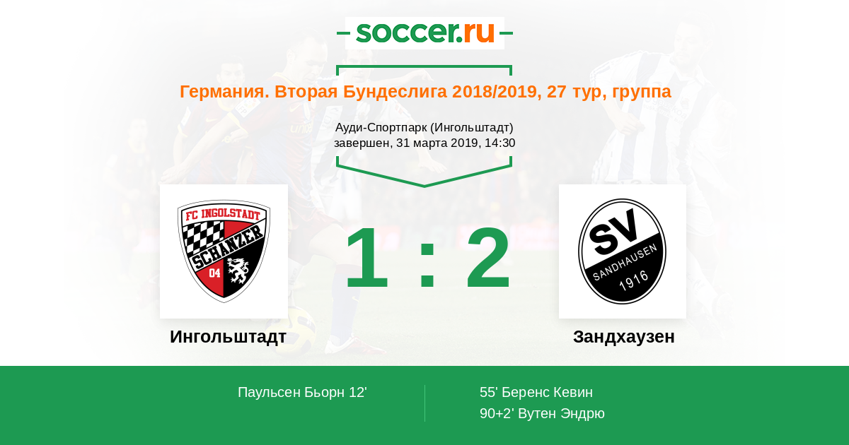 Германия. Бундеслига 2 19.10.2018 Зандхаузен Логотип футбольный клуб Зандхаузен 4:0 Логотип футбольный клуб Ингольштадт Ингольштадт