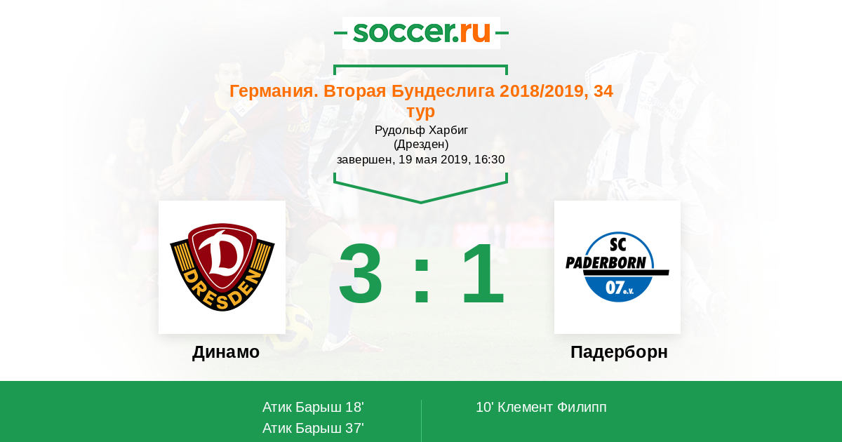 Германия. Третья лига 18.04.2009 Падерборн Логотип футбольный клуб Падерборн 1:2 Логотип футбольный клуб Динамо (Дрезден) Динамо