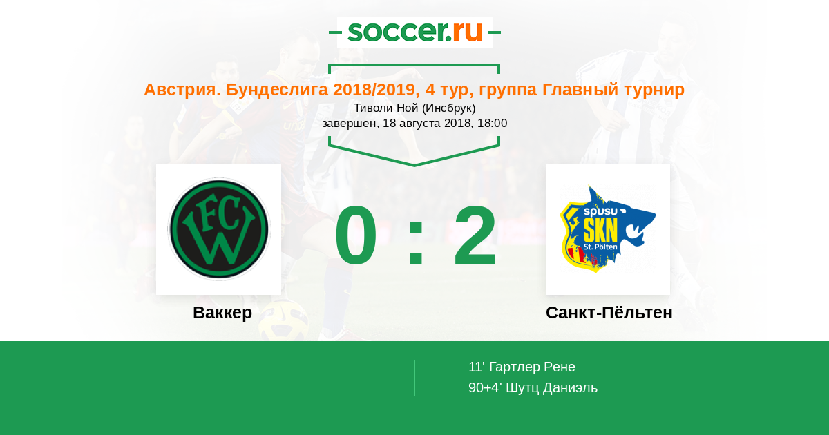 Австрия. Бундеслига 25.11.2018 Санкт-Пёльтен Логотип футбольный клуб Санкт-Пёльтен (Санкт-Пельтен) 2:0 Логотип футбольный клуб Ваккер (Инсбрук) Ваккер