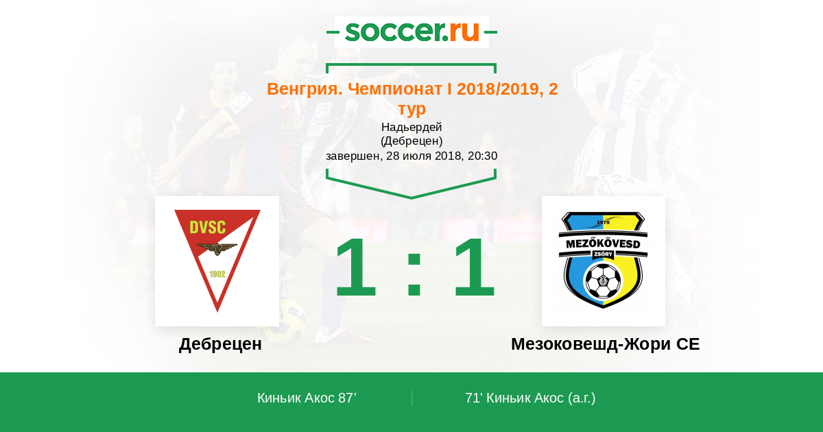 Венгрия. Чемпионат 1 03.11.2018 Мезоковешд-Жори СЕ Логотип футбольный клуб Мезоковешд-Жори СЕ 2:2 Логотип футбольный клуб Дебрецен Дебрецен