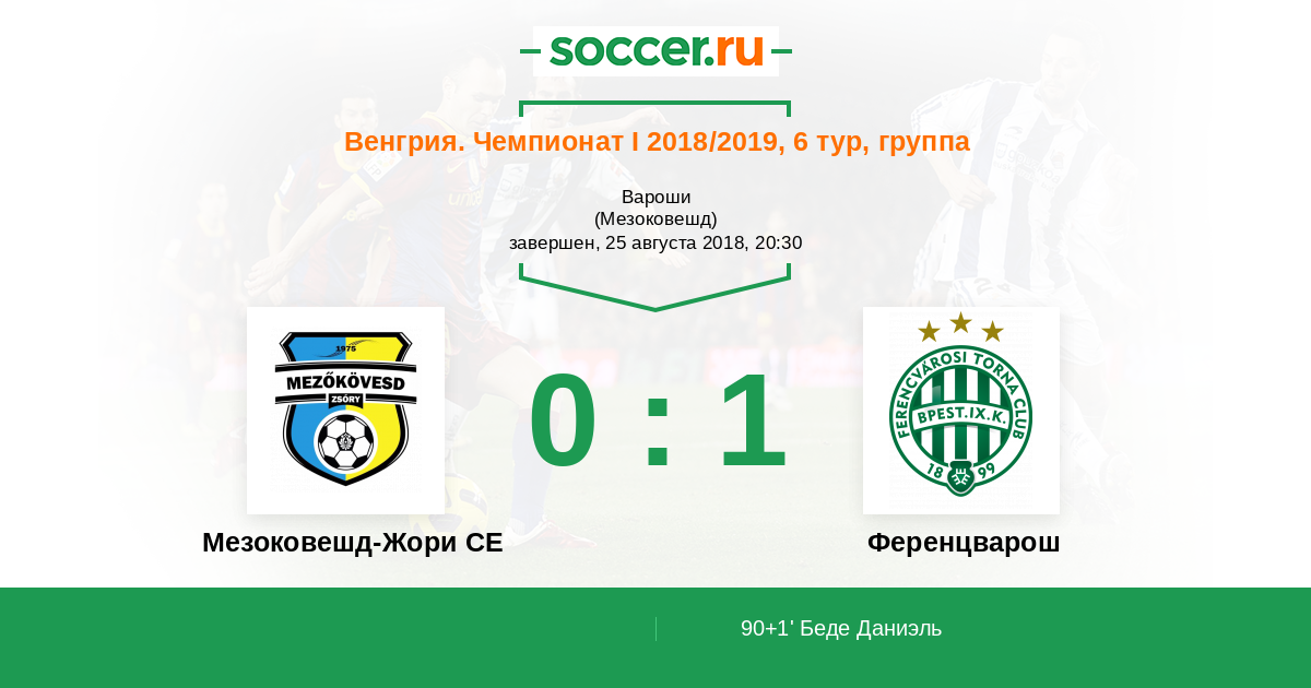 Венгрия. Чемпионат 1 08.12.2018 Ференцварош Логотип футбольный клуб Ференцварош (Будапешт) 3:2 Логотип футбольный клуб Мезоковешд-Жори СЕ Мезоковешд-Жори СЕ