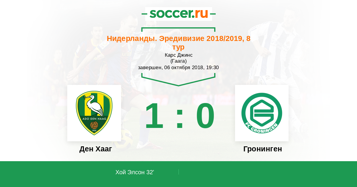 Нидерланды. Эредивизи 17.03.2019 Гронинген Логотип футбольный клуб Гронинген 1:0 Логотип футбольный клуб Ден Хааг (Гаага) Ден Хааг