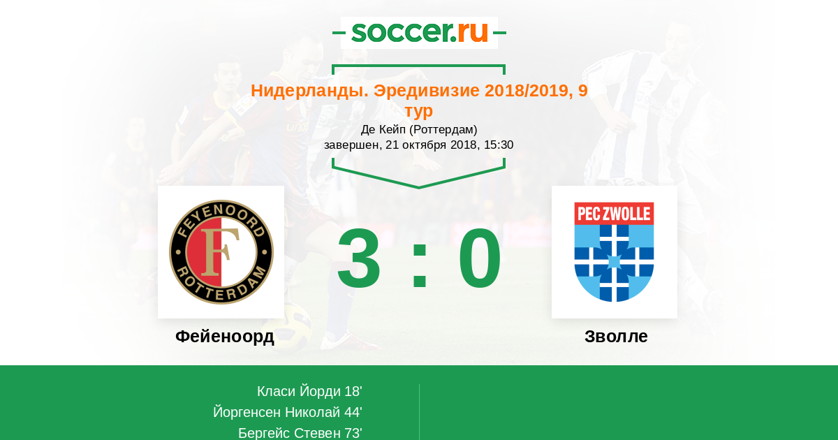 Нидерланды. Эредивизи 01.11.2014 Фейеноорд Логотип футбольный клуб Фейеноорд (Роттердам) 2:0 Логотип футбольный клуб Зволле Зволле