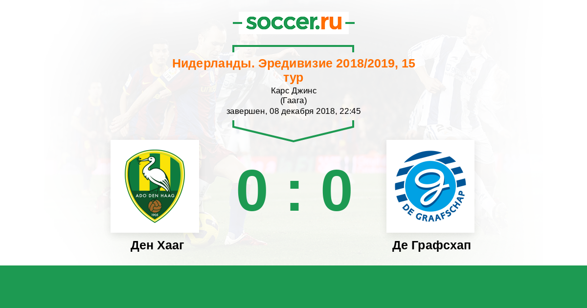 Нидерланды. Эредивизи 01.03.2019 Де Графсхап Логотип футбольный клуб Де Графсхап (Дутинхем) 1:1 Логотип футбольный клуб Ден Хааг (Гаага) Ден Хааг