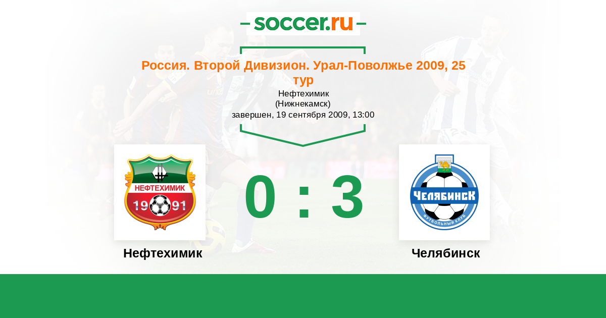 Россия. Вторая лига. Группа 4 11.06.2009 Челябинск Логотип футбольный клуб Челябинск 6:0 Логотип футбольный клуб Нефтехимик (Нижнекамск) Нефтехимик
