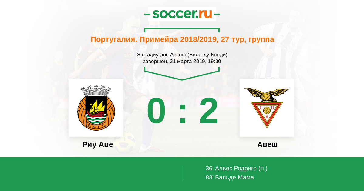 Португалия. Примейра 09.02.2020 Авеш Логотип футбольный клуб Авеш (Вила-даш-Авеш) 0:4 Логотип футбольный клуб Риу Аве (Вила-ду-Конди) Риу Аве