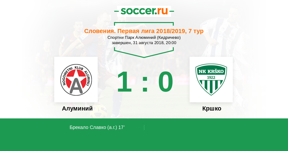 Словения. Кубок 31.10.2018 Алуминий Логотип футбольный клуб Алуминий (Кидричево) 0:0 Логотип футбольный клуб Кршко Кршко