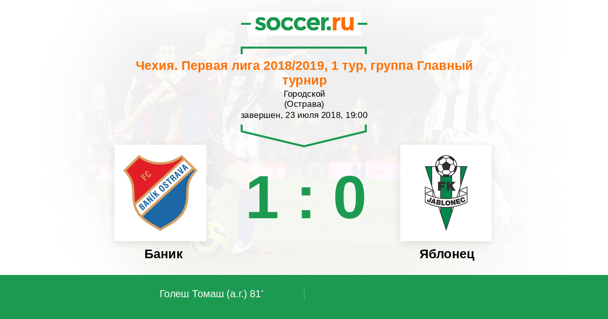 Чехия. Первая Лига 12.08.2013 Баник Логотип футбольный клуб Баник (Острава) 0:4 Логотип футбольный клуб Яблонец (Яблонец-над-Нисоу) Яблонец