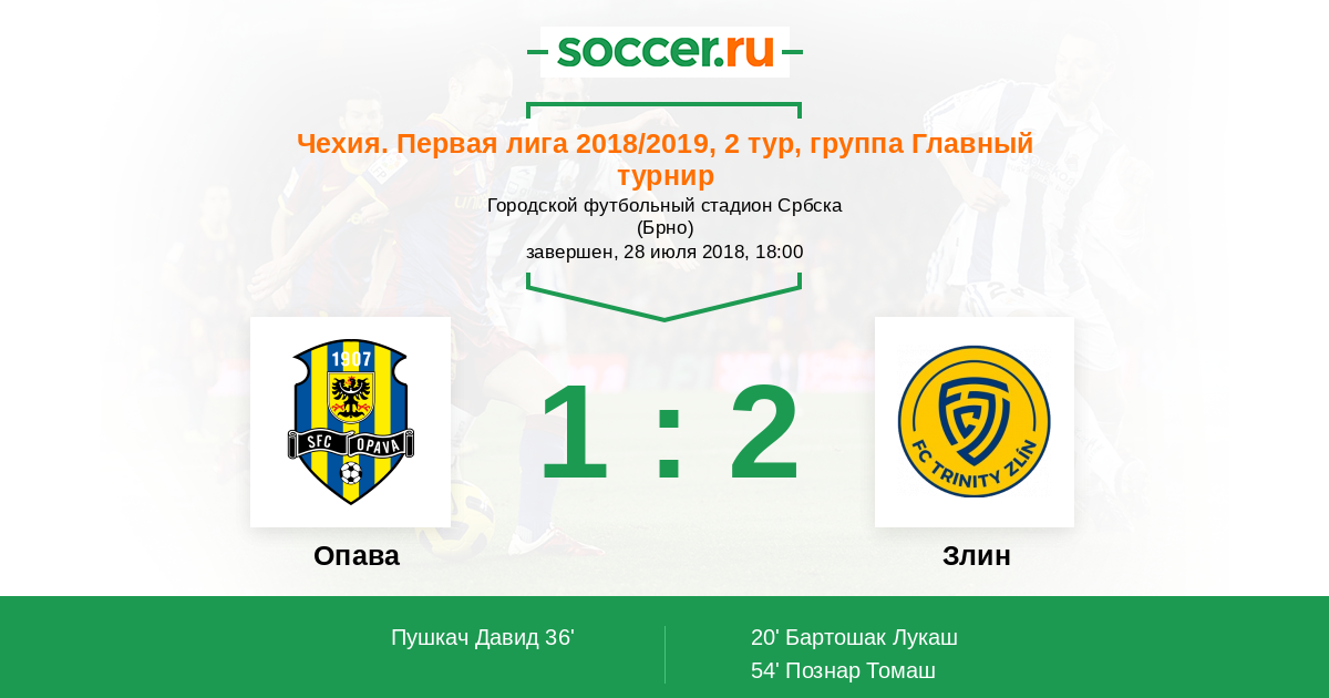 Чехия. Вторая лига 08.09.2012 Злин Логотип футбольный клуб Злин 2:2 Логотип футбольный клуб Опава Опава