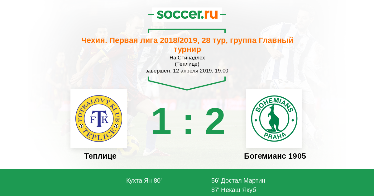 Чехия. Первая Лига 18.03.2018 Богемианс 1905 Логотип футбольный клуб Богемианс 1905 (Прага) 2:0 Логотип футбольный клуб Теплице Теплице