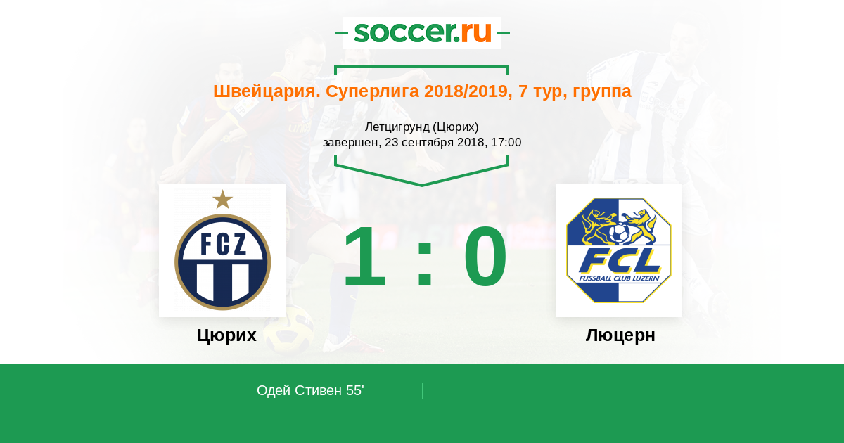 Швейцария. Суперлига 04.11.2018 Люцерн Логотип футбольный клуб Люцерн 2:5 Логотип футбольный клуб Цюрих Цюрих