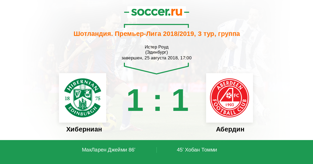 Шотландия. Премьер-Лига 19.05.2019 Хиберниан Логотип футбольный клуб Хиберниан (Эдинбург) 1:2 Логотип футбольный клуб Абердин Абердин