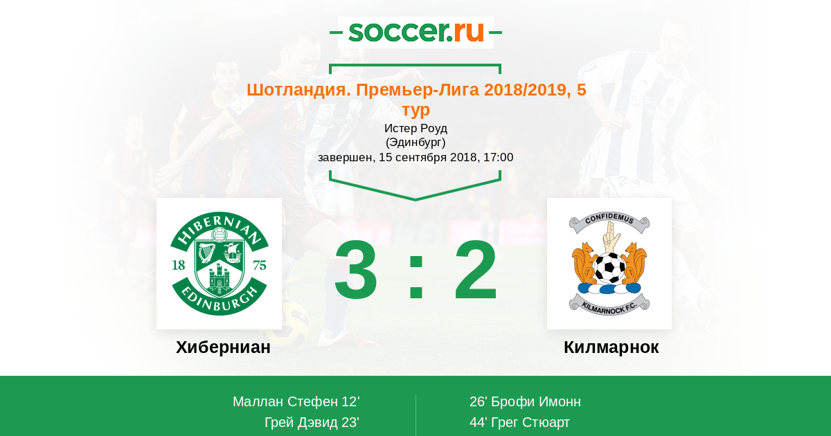 Шотландия. Премьер-Лига 15.09.2012 Хиберниан Логотип футбольный клуб Хиберниан (Эдинбург) 2:1 Логотип футбольный клуб Килмарнок Килмарнок