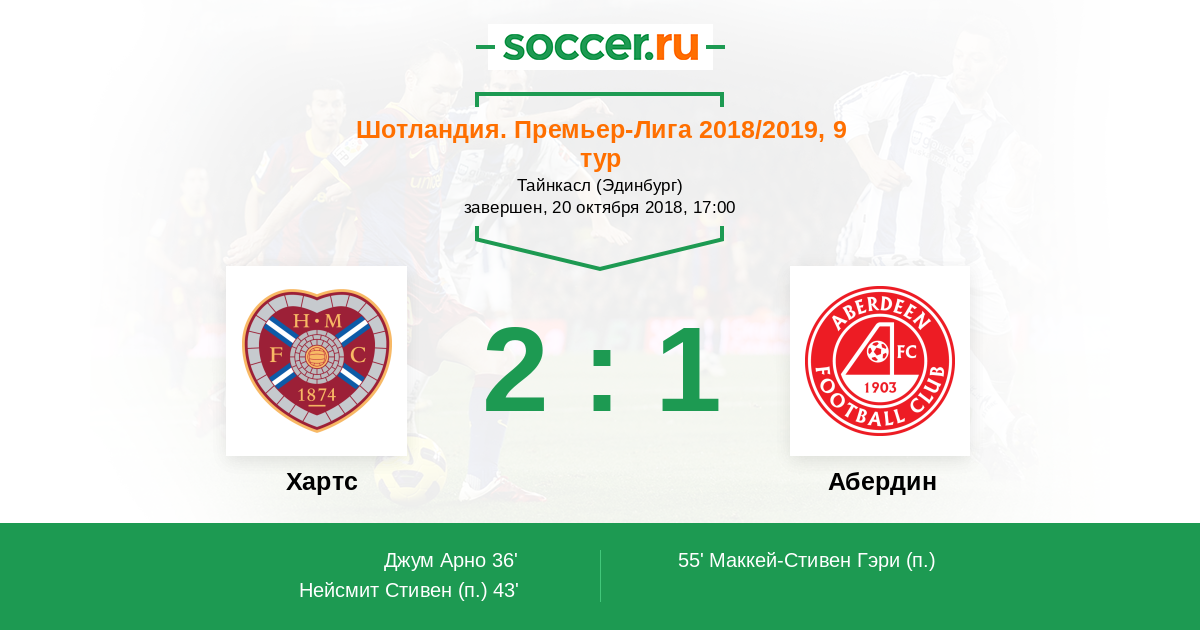 Шотландия. Премьер-Лига 07.04.2018 Хартс Логотип футбольный клуб Хартс (Эдинбург) 2:0 Логотип футбольный клуб Абердин Абердин