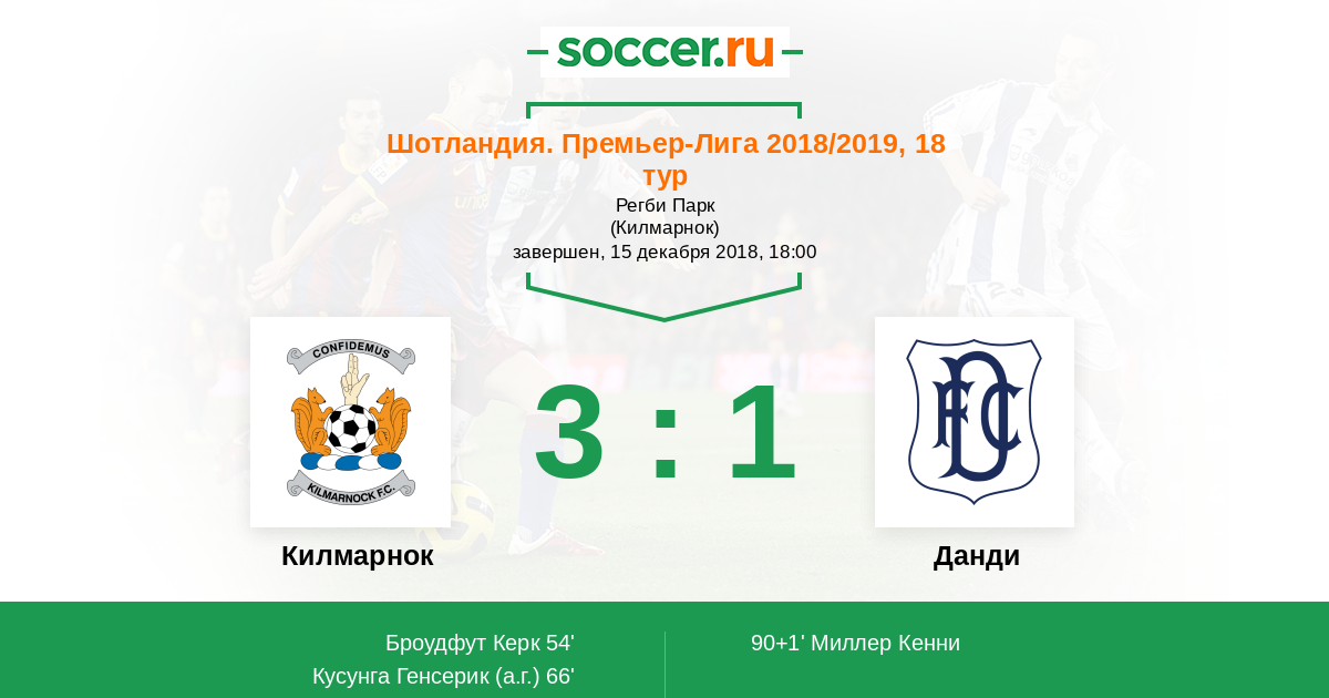 Шотландия. Премьер-Лига 18.11.2017 Данди Логотип футбольный клуб Данди 0:0 Логотип футбольный клуб Килмарнок Килмарнок