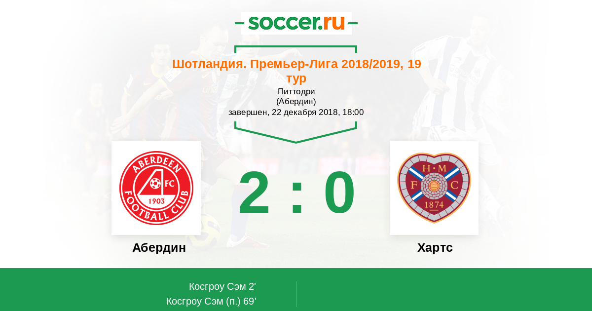 Шотландия. Премьер-Лига 30.03.2019 Хартс Логотип футбольный клуб Хартс (Эдинбург) 2:1 Логотип футбольный клуб Абердин Абердин