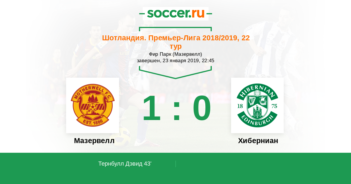Шотландия. Премьер-Лига 31.01.2018 Хиберниан Логотип футбольный клуб Хиберниан (Эдинбург) 2:1 Логотип футбольный клуб Мазервелл Мазервелл
