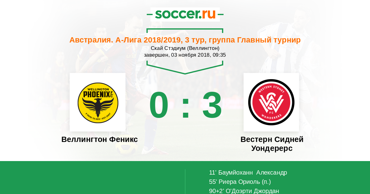 Австралия. А-Лига 08.01.2019 Вестерн Сидней Уондерерс Логотип футбольный клуб Вестерн Сидней Уондерерс 2:3 Логотип футбольный клуб Веллингтон Феникс Веллингтон Феникс