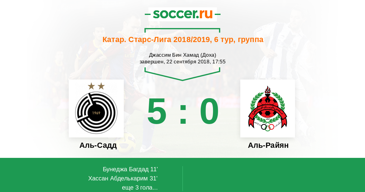 Катар. Старс Лига 02.11.2006 Аль-Садд Логотип футбольный клуб Аль-Садд (Доха) 3:0 Логотип футбольный клуб Аль-Райян Аль-Райян