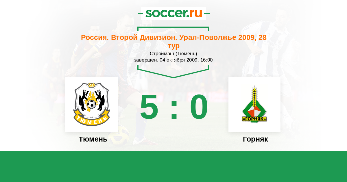 Россия. Вторая лига. Группа 4 03.06.2010 Тюмень Логотип футбольный клуб Тюмень 2:1 Логотип футбольный клуб Горняк (Учалы) Горняк