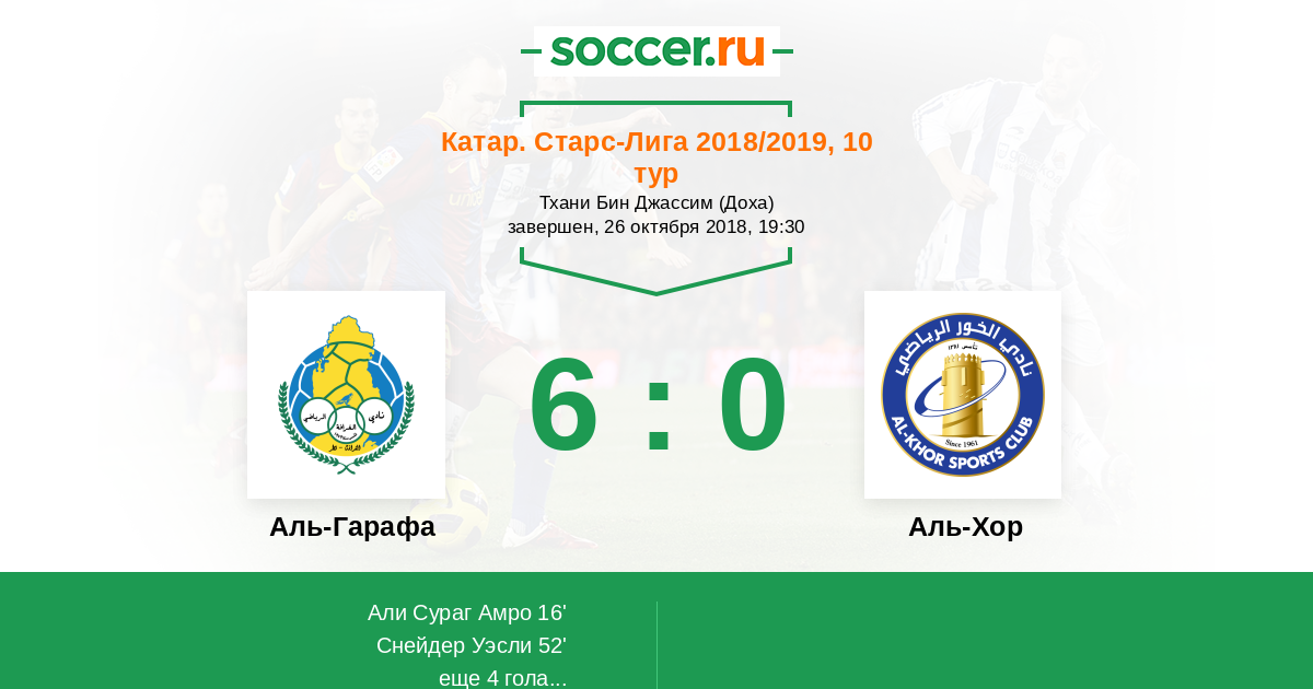 Катар. Старс Лига 14.10.2017 Аль-Гарафа Логотип футбольный клуб Аль-Гарафа (Доха) 3:0 Логотип футбольный клуб Аль-Хор Аль-Хор