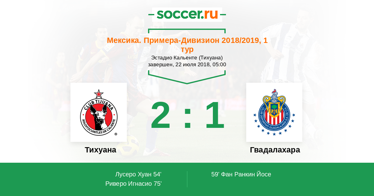 Мексика. Примера-Дивизион 30.07.2016 Тихуана Логотип футбольный клуб Тихуана 4:0 Логотип футбольный клуб Гвадалахара Гвадалахара