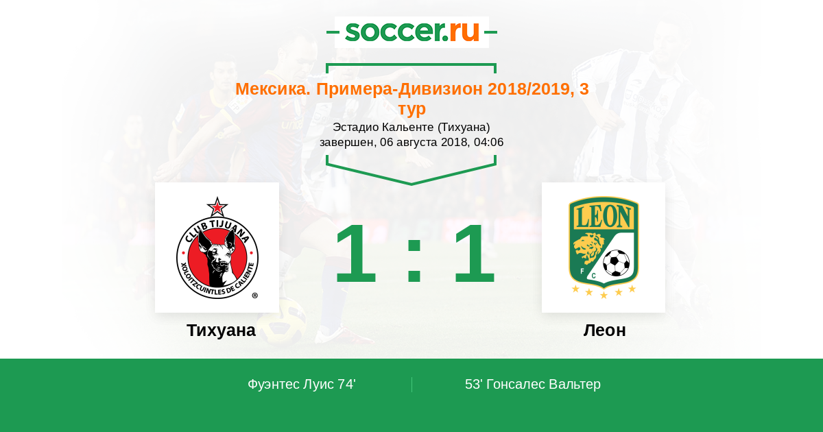 Мексика. Примера-Дивизион 22.04.2018 Леон Логотип футбольный клуб Леон 1:1 Логотип футбольный клуб Тихуана Тихуана