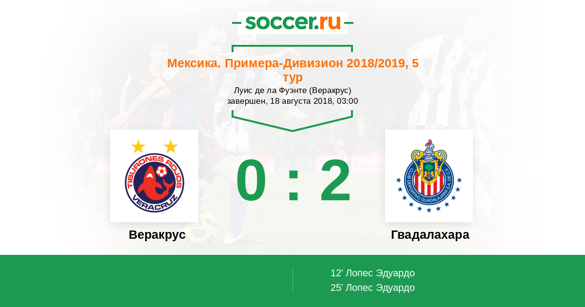 Мексика. Примера-Дивизион 25.07.2015 Веракрус Логотип футбольный клуб Веракрус 2:0 Логотип футбольный клуб Гвадалахара Гвадалахара