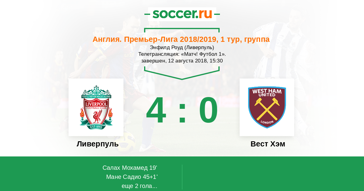 «Вест Хэм»: Фабиански, Огбонна, Бальбуэна, Райс, Фредерикс, Масуаку, Уилшир, Нобл, Арнаутович, Фелипе Андерсон, Антонио.