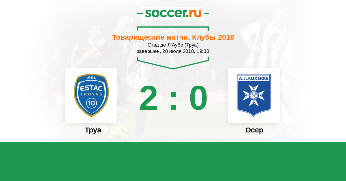Товарищеские матчи. Клубы 09.07.2014 Труа Логотип футбольный клуб Труа 2:1 Логотип футбольный клуб Осер Осер