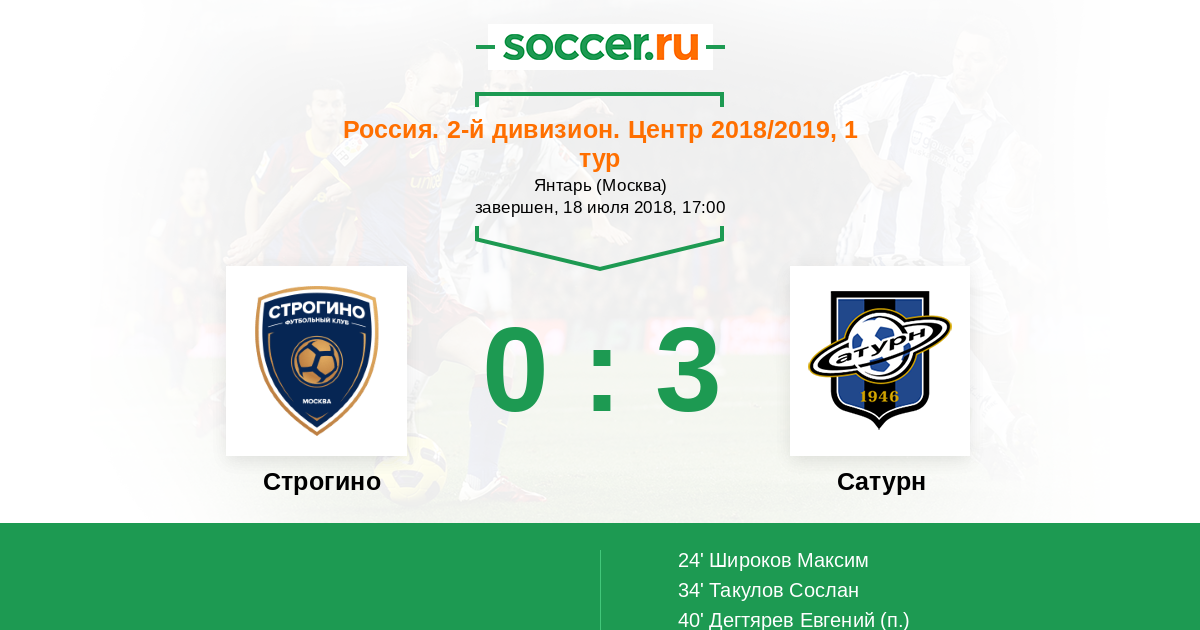 Россия. Вторая лига. Группа 3 02.06.2019 Сатурн Логотип футбольный клуб Сатурн (Раменское) 3:2 Логотип футбольный клуб Строгино (Москва) Строгино